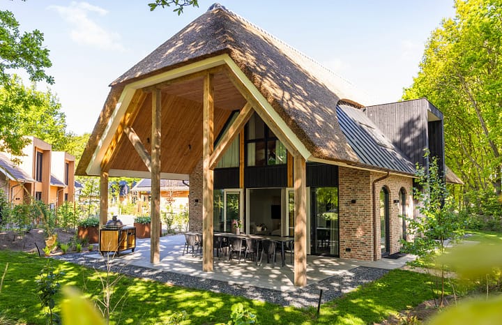 Met zijn rietgedekte kap en twee charmante dakkapellen straalt de Boerderij Villa Wellness een landelijke en tegelijkertijd luxe sfeer uit.