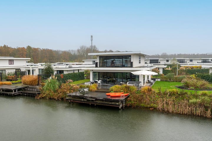 Buiten vind je een ruim terras met een eettafel aan het water, een comfortabele lounge set en toegang tot je eigen aanlegsteiger met zwemtrap. Extra bijzonder: bij deze woning liggen twee kano’s voor je klaar – ideaal om op een rustige ochtend het water op te gaan.