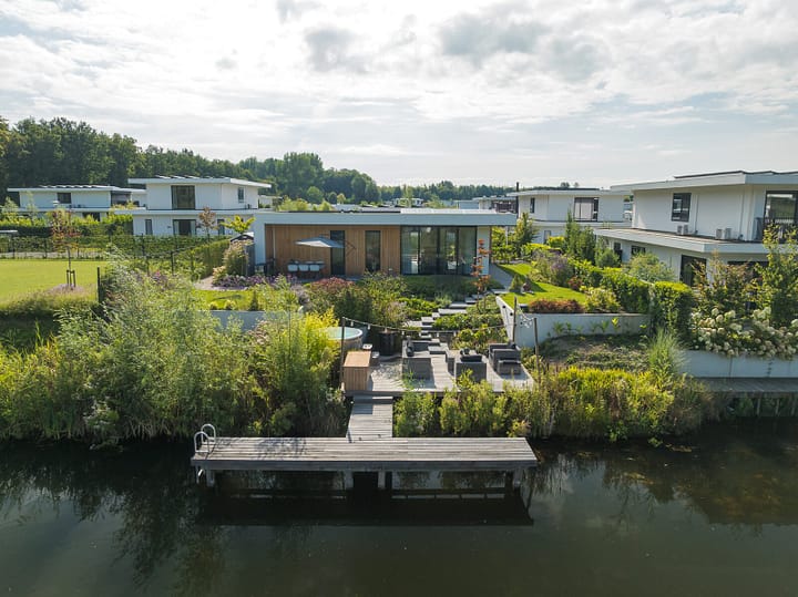 Luxe 4-persoons gelijkvloerse villa met elektrisch verwarmde jacuzzi, ligbad, loungeset aan het water en twee fietsen. Gelegen op Villa Resort Harderwold, vlakbij Harderwijk en het Veluwemeer!