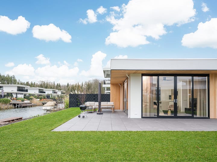 Luxe 4-persoons villa aan het water met moderne keuken, privé zwemsteiger en een ruim terras met barbecue en loungeset. Perfect voor rust en ontspanning!