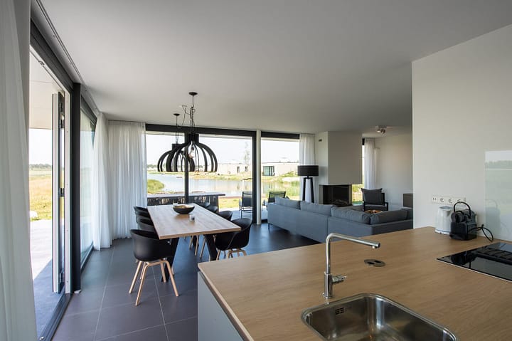 Waterlijn 44 is een luxe 8-persoons wellnessvilla, uitgerust met een Finse sauna. Vanuit uw woonkamer heeft u een weids uitzicht over het Zeeuwse polderlandschap.