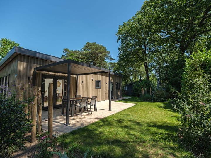 Naast de stijlvolle inrichting biedt de lodge ook extra comfort met airconditioning, die zowel kan verwarmen als koelen, voor een optimaal binnenklimaat in elk seizoen. Buiten geniet u van de luxe pergola, zodat u zelfs op warme dagen of tijdens een lichte regenbui heerlijk buiten kunt zitten.
