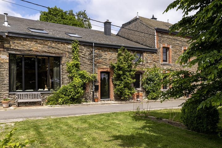 U verblijft in een sfeervolle zespersoons gîte, gevestigd in de verbouwde schuur van een jagershuis uit 1850 in de vallei van de Semois. De woning is gebouwd met leem en lokaal hout en straalt rust en eenvoud uit. De ruime leefkeuken is van alle gemakken voorzien en de royale eettafel bij de grote pelletkachel vormt het hart van het huis, een fijne plek om samen te koken, tafelen of een spel te spelen.De gîte beschikt over drie slaapkamers, elk met een eigen douche en wastafel. Twee kamers hebben een tweepersoonsbed, één kamer heeft twee eenpersoonsbedden en geen raam, wat zorgt voor een volledig verduisterde slaapruimte. Daarnaast zijn er twee aparte toiletten.In de winter wordt de woning verwarmd met de pelletkachel in de leefruimte. Het verbruik van de pellets is niet inbegrepen in de huurprijs en wordt verrekend via de waarborg op basis van het aantal gebruikte zakken. Op de slaapkamers zijn elektrische radiatoren aanwezig.Via het grote schuifraam bereikt u het houten terras met barbecue en tuinmeubilair. In de tuin geniet u van kruiden, fruitbomen en een tweede terras met uitzicht over de omliggende weiden en velden. U parkeert twee auto’s op het grasveld voor de woning.De vallei van de Semois is een geliefde bestemming voor rustzoekers en natuurliefhebbers. Wandel de bossen in, waar uitgestippelde routes u langs uitzichtpunten, rotswanden en kronkelende rivierarmen leiden. Ook voor fietsers en mountainbikers zijn er uitdagende routes door heuvelachtig terrein en uitgestrekte natuurgebieden. Onderweg ontdekt u kleine Ardense dorpjes, panoramische vergezichten en stille plekken waar u echt even afstand neemt van het dagelijkse tempo.
