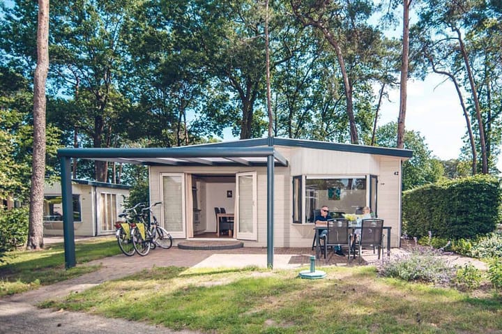 Geniet van alle comfort deze vakantie in de bungalowchalet voor vier personen (ca. 50 m2). Deze bungalowchalet heeft twee slaapkamers, zonder stapelbedden. Een gezellige woonkamer, douche met toilet en een moderne keukenhoek met magnetron. Er is zelfs een flat-screen tv om je favoriete programma niet te hoeven missen! CV verwarmd en gelegen rondom de receptie en dichtbij het zwembad. Deze accommodatie is rook- en huisdiervrij.