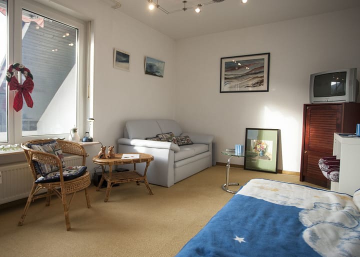 In deze studio hoog boven de daken van Niedersfeld zult u zich thuis voelen. U treft hier een grote woon/slaapkamer met een eethoek, een grote slaapbank voor 2 personen en één voor 1 persoon. Direct vanaf het aangrenzende dakterras heeft u een prachtig uitzicht over de Hillebachsee en een gedeelte van Niedersfeld. In de keuken vindt u naast een vaatwasser, alle benodigde keukengerei zoals een Senseo apparaat, koffiezetapparaat, magnetron, gasfornuis met oven en koelkast met vriesvak. De badkamer heeft een douche, toilet en wastafel .