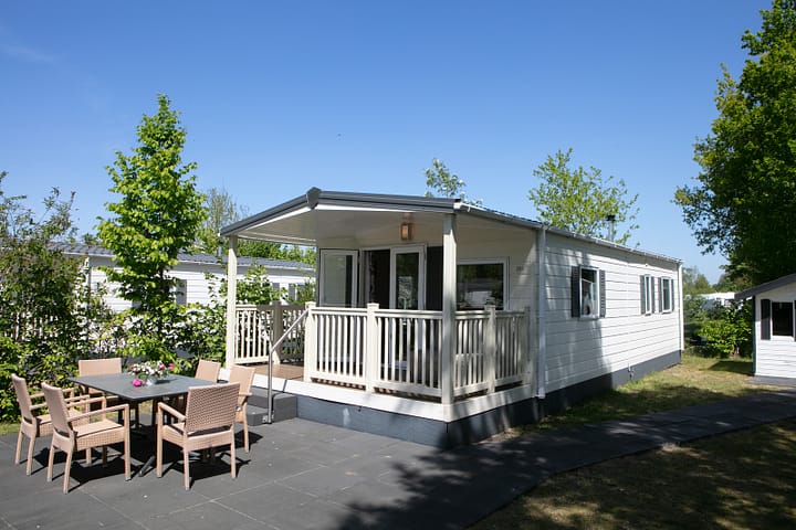 De 6-persoons mobile home is geschikt voor 6 personen (2 volwassenen en 4 kinderen). Deze accommodatie beschikt over een veranda en heeft 3 slaapkamers. Een ouderslaapkamer met 2 persoonsbed, een kinderkamer met twee 1-persoonsbedden en een kinderkamer met stapelbed. Een toilet, badkamer met douche en wastafel. Complete keuken met o.a. koelkast, Senseo, magnetron met grill en fornuis. Ook is er een LCD-Tv met blu-ray speler aanwezig. Er is een parkeerplaats bij de accommodatie voor 1 auto.