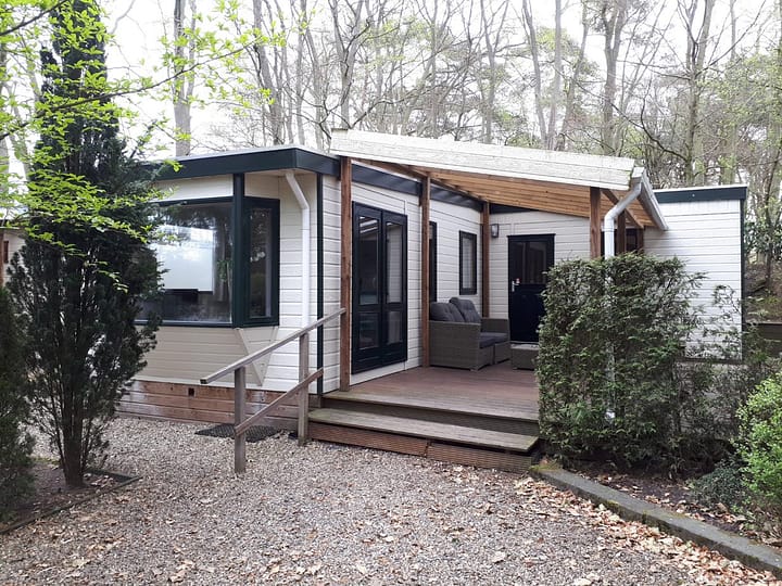 Chalet met drie slaapkamers en een luxe tuinhuis met stapelbed en wastafel waar eventueel (op aanvraag) ook geslapen kan worden.Het chalet is voorzien van een woonkamer met flatscreen TV en radio-CD speler. Er is een open keuken (vernieuwd in 2016 ) voorz
