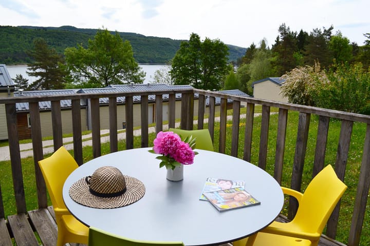 Gelegen aan het Lac de Vouglans op een hoogte van 550 m. vindt u het vakantiedorp in het dorp Maisod. Het vakantiedorp bestaat uit 40 duplex-appartementen met uitzicht op het meer. U vindt er een receptie met toeristische informatie, een openhaard hoek, leeshoek, tafeltennis, tafelvoetbal, sportterrein voor volleybal/ basketbal, verwarmd zwembad met kinderbad ( juni tot september), wasserette en een parkeerplaats. U kunt op aanvraag gratis een baby-kit (babybed, badje en kinderstoel) lenen en ter plaatse bij de receptie spelletjes en een fondue apparaat lenen. Tegen bijbetaling kunt u extra reserveren voor een badkamerpakket, de eindschoonmaak of schoonmaakpakket. Iedere week is er een begeleide wandeltocht in de direkte omgeving en middaganimatie zoals video en streekmarkt en avondanimatie zoals spektakels, enz. Voor de kinderen zijn er in verschillende leeftijdsgroepen kinder/jeugdclubs variërend van 6 tot 14 jaar. De winkels bevinden zich op 6 km. Huisdieren, mits gereserveerd, worden geaccepteerd. (vaccinatiebewijs en aangelijnd verplicht, gevechtshonden zoals pitbulls uitgesloten) De dichtstbijzijnde ski-gebieden bevinden zich op 30 minuten tot 1 uur en bieden Alpine-skiën en langlaufmogelijkheden. Dit vakantiedorp is uitermate geschikt als u graag iets wilt bezichtigen maar tevens een combinatie zoekt met ski mogelijkheden in de omgeving. In de winter (dec. tot maart) is het lakenpakket bij de prijs inbegrepen.