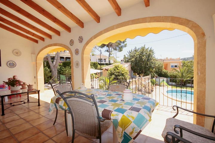 De villa in Javea biedt drie kamers en is geschikt voor zes personen. De villa is gezellig en compleet ingericht. Het heeft een oppervlakte van 200m2. U heeft uitzicht over de berg en de tuin. Het ligt 2km van El Arenal zandstrand.  Het huis staat in een rustig woonwijkcomplex. De accommodatie is voorzien van tuin, tuinmeubilair, afgebakend terrein, terras, barbecue, open haard, internet, airconditioning in het hele huis, eigen zwembad, overdekte parkeergelegenheid voor twee voertuigen in het zelfde gebouw, televisie en satelliet. In de aparte keuken met keramisch fornuis staat een koelkast, magnetron, oven, wasmachine, afwasmachine, serviesgoed en bestek, keukenbenodigdheden, koffiezetapparaat en broodrooster.