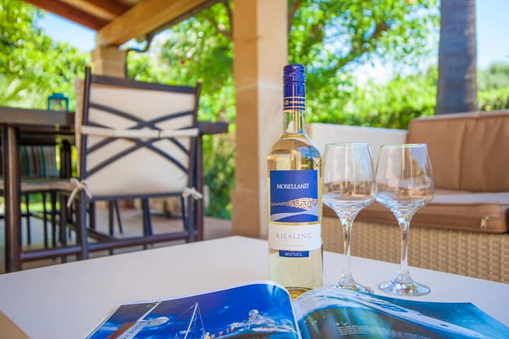 U zult genieten van de charmante buitenkant van dit huis, want het heeft terrassen, veranda’s en tuinen. U kunt zonnebaden op de 4 ligstoelen of gewoon met de kinderen spelen op het gazon, dat een deel van het huis omringt. Het gemeubileerde terras met twee fauteuils en een gezellige bank is ideaal om een boek te lezen of te genieten van een glas goede Mallorcaanse wijn. De volledig ingerichte veranda is ideaal om aangename momenten door te brengen met familie of vrienden, of om een heerlijke barbecue te bereiden. De privacy van het huis is volledig en het terrein is omheind.