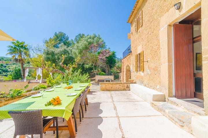 In een zeer bijzondere omgeving, rustig en privé, geeft deze finca u het gevoel dat u zich in hetzelfde paradijs bevindt. Elk van de buitenruimtes nodigt uit om te ontspannen en te genieten van de prachtige natuur, evenals de kleine paden die leiden tot verdwalen. Het bijzondere chloorbad heeft een afmeting van 6 x 3,4 meter en de diepte varieert van 1,20 tot 1,60 meter. Het is omgeven door een prachtig houten oppervlak en 8 ligstoelen. Elk van hen, evenals het Bali-bed, is de perfecte plek om een mentaal beeld te krijgen van het onvergelijkbare berglandschap. Kinderen kunnen voor hen spelen in de prachtige speeltuin. Als u van barbecueën houdt, kunt u van uw maaltijden genieten op de veranda of aan de grote tafel op het terras.