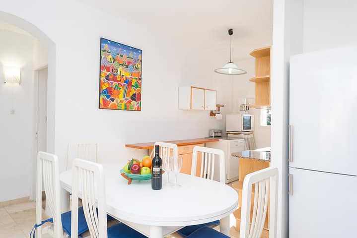 Het geweldige uitzicht op de zee omringt het geweldige terras dat perfect is ingericht voor een heerlijk ontbijt en een heerlijke maaltijd in de buitenlucht. Maar het beste van alles is niet het uitzicht, maar het feit dat je de straat over kunt steken en meteen een koele duik in de zee kunt nemen. Bij terugkomst vindt u een buitendouche voor het geval u het zout wilt afwassen voordat u binnengaat.