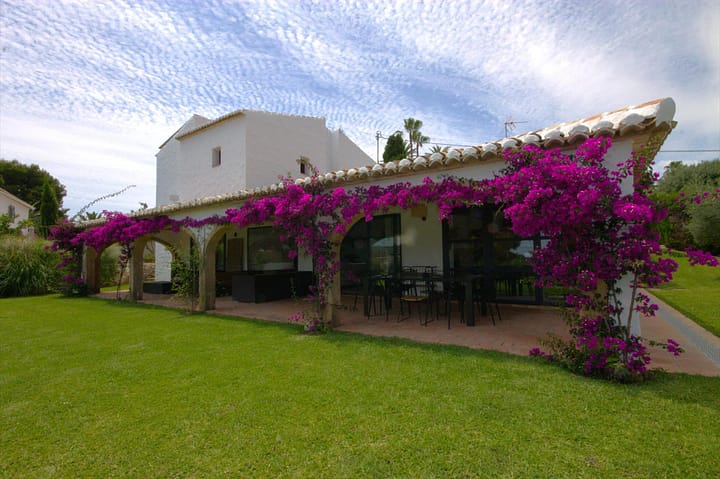 Grote en mooie villa in Javea, Costa Blanca, Spanje met privé zwembad voor 8 personen. Het huis ligt in een kust- en woonwijk, dicht bij restaurants en bars en op 3 km van het strand El Arenal.