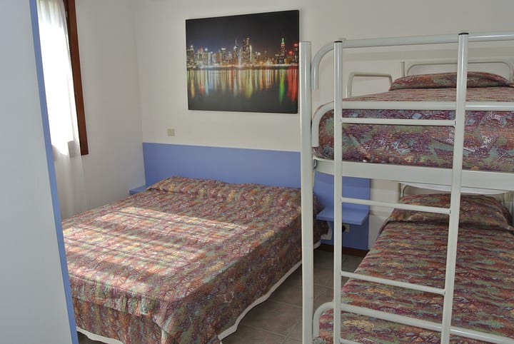 Het is een klein gebouw bij de zee in een rustig gebied en op loopafstand van het centrum van Liganno Pineta.  Het appartement is op de eerste verdieping, woonkwamer met keukenhoek, groot terras met stoelen, slaapkamer met tweepersoonsbed en stapelbedden, badkamer met douche, tuin en parkeerplaats.