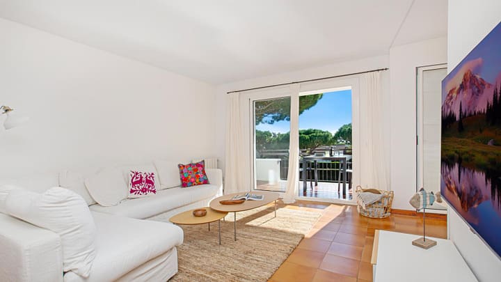 Vernieuwd appartement (110 m2) ligt in Llafranc, op ongeveer 250 meter van het strand en het centrum van de stad. Op de 1e verdieping zonder lift. Binnen een vakantie complex met een zwembad en een tuin.