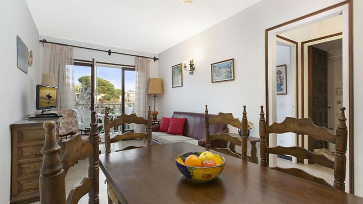 Eenvoudig appartement van 50 m2 gelegen in Calella de Palafrugell, op 400 m van het strand en het stadscentrum. Het bevindt zich in een vakantiecomplex met een gemeenschappelijk zwembad, een tennisbaan en een speeltuin voor kinderen.
