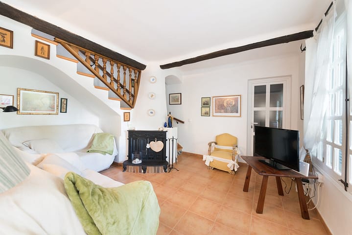 De huis is120 m2 en het is ideaal voor gezinnen of kleine groepen van vrienden,met drie tweepersoonskamers. Er zijn twee kamers met elk twee eenpersoonsbedden en een kamer op de begane grond, met een tweepersoonsbed. Alle kamers hebben een kast en zijn zeer ruim. Het huis heeft een badkamer met bad (onlangs gerenoveerd) en een toilet beneden. Er is geen AC in het huis, maar u zult niet het gevoel warm te hebben, dat komt door de zee. Echter, kunnen wij u voorzien van ventillatoren op aanvraag. In de woonkamer is er een open haard die u tijdens de wintermaanden kunt gebruiken.