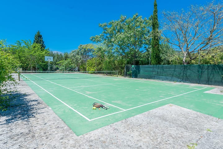 De buitenkant is prachtig: stap naar buiten voor een barbecue, zwem in het zwembad of ontspan gewoon op het terras. Het terras is ingericht met een tafel en stoelen. Naast het privézwembad is er een zone met 5 ligstoelen om te zonnen. Het chloorzwembad meet 8 x 4 meter en heeft een diepte tussen 1,5 m en 2 m. Als je erg actief bent, zul je zeker genieten van de tennisbaan en het basketbalveld die je direct achter het huis vindt. Er is ook tafeltennis om zomermiddagen door te brengen met familie en vrienden. Er zijn rackets en ballen aanwezig. Er is 6.000 m2 grond met veel amandelbomen, sinaasappelbomen, enz. Er is één directe buur en een paar anderen die in de omgeving liggen.