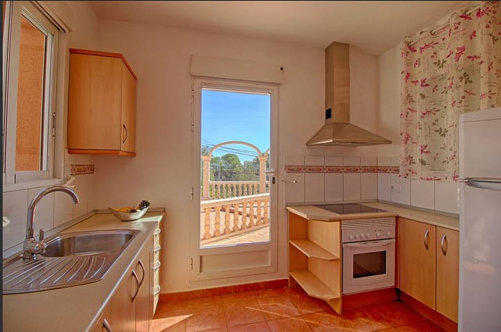 Het bungalow in Calpe heeft 2 slaapkamer(s) en is geschikt voor families en groepen tot 5 personen. Deze gezellig ingerichte woning is volledig uitgerust, De accommodatie heeft een oppervlakte van 70 m², en U heeft een mooi uitzicht op zee en de bergen. Uw acommodatie ligt in een rustige omgeving en vlak aan zee. De woning bevindt zich op 0,15 km van het zandstrand Puerto Blanco, 1,80 km van het rotsstrand La Manzanera, 1,40 km van het dorp Calpe, 2,20 km van de supermarkt Mercadona, 75 km van de luchthaven Alicante-Elche, 2,50 km van het treinstation Estación de tren FEVE, 1,50 km van het busstation Autobús local, 25 km van de pretpark Terra Mítica, 25 km van de waterpretpark Aqualandia, 4,80 km Peñón de Ifach.Tevens heeft u de beschikking over Tuinmeubilair, Terras, Strijkijzer, Internet, Airconditioning (warm / koud), Airconditioning in de woonkamer en in sommige slaapkamers, Gemeenschappelijk Zwembad, Buitenparkeerplaats (2 plaatsen) in Het zelfde gebouw, 1 Televisie, Satelliet (Talen: Spaans, Engels, Duits, Nederlands, Frans).De aparte keuken, met keramisch fornuis, is uitgerust met koelkast, magnetron, oven, wasmachine, servies/bestek, keukengerei.