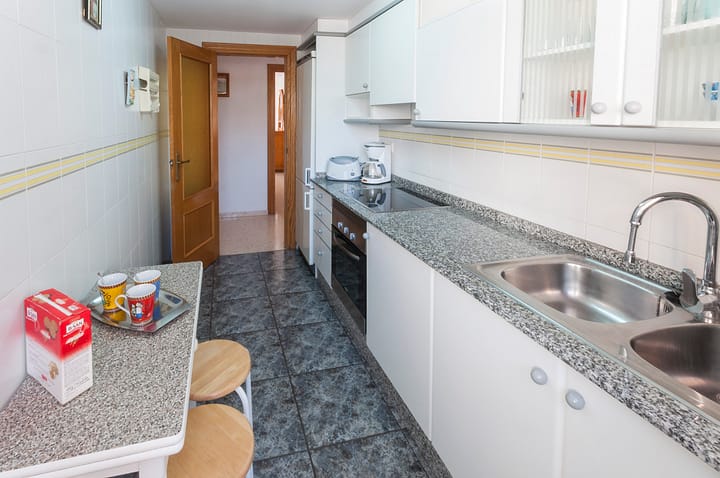 Op slechts een steenworp afstand van het zandstrand heeft dit gezellige appartement voor 6 personen toegang tot een gedeeld zwembad.