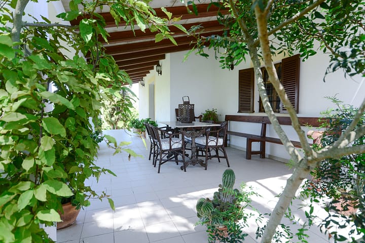 Dit comfortabele landhuis is omgeven door een groene tuin met veel planten, en ligt op een kleine heuvel, die een mooi uitzicht biedt over het platteland. Het privé zwembad van 10m x 5m heeft een diepte van 0,5m tot 1,8m. Rond het zwembad zijn er ligstoelen om van de mediterrane zonneschijn te genieten. De veranda beschikt over een eettafel en er is een barbecue, dus u zal zeker genieten van een aantal memorabele buitendiners. Het terrein is omheind en er zijn geen directe buren, dus u geniet van complete privacy.