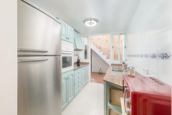 Dit mooie en vernieuwde huis in Alcudia bestaat uit drie verdiepingen die moderniteit en traditie perfect combineren. Het biedt twee gezellige en zonnige terrassen waar onze gasten kunnen genieten van het goede weer op het eiland. De eerste van de terrassen bevindt zich op de eerste verdieping en is ingericht met een tafel met stoelen waar u ’s avonds kunt genieten van een heerlijke barbecue. Maar zeker, het terras op de tweede verdieping zal onze gasten verrukken, want het heeft een solarium met 4 ligstoelen om te zonnebaden, een buitendouche om af en toe af te koelen, en een bar waar u geweldige cocktails kunt bereiden in het beste gezelschap van uw dierbaren.