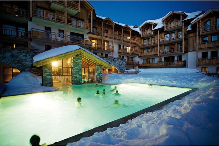 Ontdek het in de volle zon verwarmde buitenzwembad, waar u kunt ontspannen terwijl u de omliggende bergtoppen bewondert. Profiteer van de gemeenschappelijke ruimtes en de aangename ontvangstruimte met zijn prachtige open haard, warm en bevorderlijk voor ontspanning. De vakantieresidentie biedt 2 spa-ruimtes met een eigen wellnessruimte van 150 m² met sauna, hamam, jacuzzi en behandelkamers.