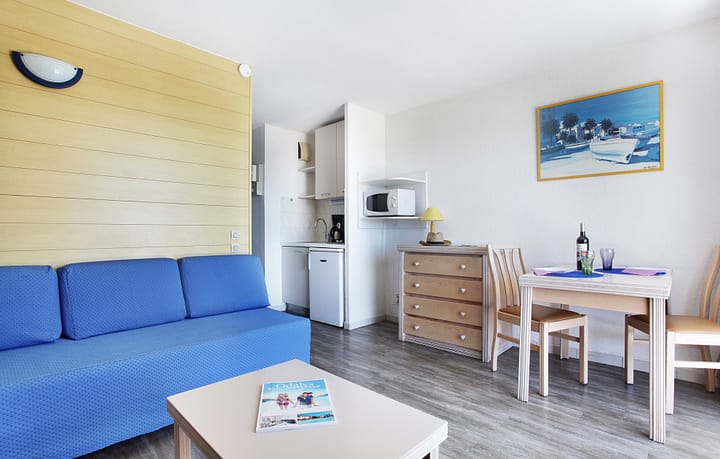 De residentie ligt op een paar minuten afstand van het dorp, tegenover de rots van Sete in het hart van een dennenbos wat uitkijkt op de Etang de Thau. Het ligt ideaal in deze weelderige, natuurlijke, groene omgeving, zeer geschikt voor een rustig en ontspannen verblijf. De residentie heeft 104 appartementen verdeeld over drie verdiepingen, geschikt voor 2 of 4 personen, allemaal compleet ingericht, met een keukenhoek met magnetron, badkamer of douche, aparte toilet behalve in de studio appartementen, gratis televisie, gemeubileerd terras.