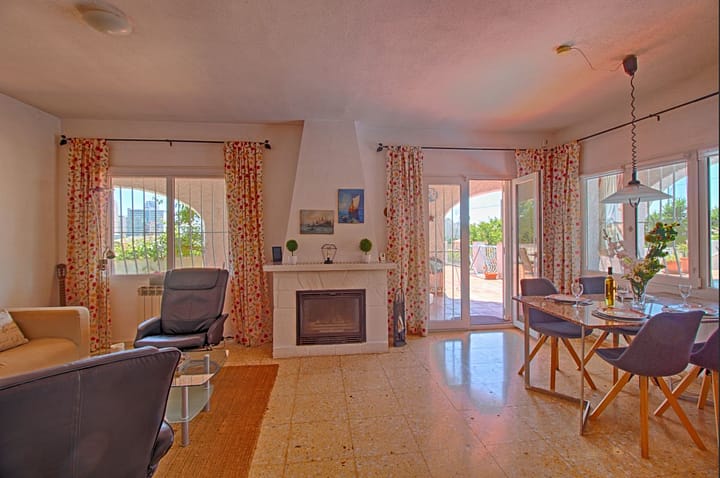 De villa in Calpe heeft 3 slaapkamer(s) en is geschikt voor families en groepen tot 7 personen. Deze gezellig ingerichte woning is volledig uitgerust, De accommodatie heeft een oppervlakte van 80 m², en u heeft een mooi uitzicht op zee. Uw acommodatie ligt in een rustige omgeving en vlak aan zee. De woning bevindt zich op 2 km van het zandstrand, 2 km van het dorp, 1 km van de supermarkt, 75 km van de luchthaven, 5 km van het treinstation.Tevens heeft u de beschikking over: tuin, tuinmeubilair, omheind perceel, terras, barbecue, strijkijzer, privé zwembad, parkeerplaats (3 plaatsen), televisie, satelliet/kabel ontvangst (Talen: Spaans, Engels, Duits, Nederlands, Frans).De aparte keuken, met gasfornuis, is uitgerust met: koelkast, magnetron, oven, vriezer, wasmachine, serviesgoed/bestek, keukengerei.