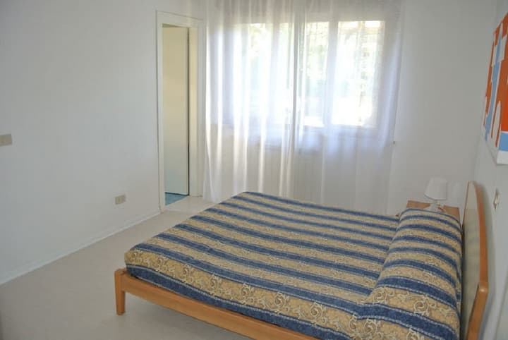 Een klein gebouw met acht appartementen op een rustige plek dichtbij het centrum van Lignano Pineta, slechts 150m van het strand met gemeenschappelijke tuin en parkeerplaats. Het opgeknapte appartement op de begane grond met nieuw meubilair bestaat uit een woonkamer met keukenhoek met tweepersoonsslaapbank, twee badkamers waarvan een met wasmachine, een tweepersoonsslaapkamer, slaapkamer met twee bedden, slaapkamer met stapelbedden, groot terras en afwasmachine.