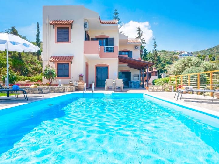“Villa Lygaria”, villa 4-kamers 140 m2 op 2 verdiepingen. Zeer comfortabel en gezellig ingericht: woonkamer met Sat-TV (Flatscreen TV). Uitgang naar de veranda, pergola. Open keuken (oven, afwasmachine, 4 keramische glas kookplaten, magnetron, elektrische koffiemachine) met eettafel. Uitgang naar de veranda, pergola. Aparte WC. Air-conditioning. Bovenverdieping: 1 2-pers. kamer met 1 2-pers bed. Uitgang naar het balkon. 1 2-pers. kamer met 1 2-pers bed. 1 kinderkamer met 1 bed. Bad/WC. Air-conditioning. Groot balkon, klein balkon, ruime zithoek in de tuin. Terrasmeubelen, balkonmeubilair. Panoramazicht op zee, de tuin en het landschap. Ter beschikking: wasmachine, kluis, strijkijzer, haardroger. Internet (Internet (WiFi), gratis). 571352