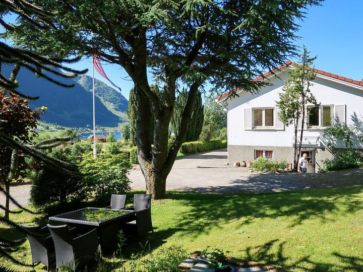 “Breidablikk (FJS561)”, halfvrijstaand huis 4-kamers 90 m2. Gezellig ingericht: woon-/eetkamer met open haard, eettafel, Sat-TV en internationale TV-zenders. 1 kamer met 1 2-pers bed (150 cm, lengte 200 cm). 1 kamer met 1 bed (90 cm, lengte 200 cm). 1 kamer met 1 bed (90 cm, lengte 200 cm), 1 slaapplaats (75 cm, lengte 200 cm). Open keuken (4-pits kookplaat, oven, afwasmachine, broodrooster, waterkoker, magnetron, diepvriezer, elektrische koffiemachine). Douche/WC. Elektrische verwarming. Houten vloeren. Terras. Terrasmeubelen, barbecue. Uitzicht op de rivier. Ter beschikking: wasmachine, droger, strijkijzer, kinderstoel, kinderbed. Internet (Internet (WiFi), gratis). Let op: rookvrij huis. Rookmelders, brandblusser.
