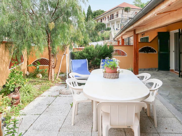 “Veranda (SRM133)”, halfvrijstaand huis 4-kamers 120 m2 op 2 verdiepingen. Licht, modern ingericht: woon-/slaapkamer met 1 2-pers divanbed (140 cm), TV. Uitgang naar het terras. 1 kamer met 1 2-pers bed (160 cm). Uitgang naar het terras. Open keuken (oven, afwasmachine, 4 kookpitten (vlammen), broodrooster, waterkoker, magnetron, diepvriezer, elektrische koffiemachine) met eettafel. Bidet, aparte WC. Bovenverdieping: 1 kamer met 1 2-pers bed (160 cm). 1 open kamer met 1 2-pers bed (160 cm). Slaapnis met 1 bed (90 cm). Bad/bidet/WC. Gas-verwarming. Verwarming alleen beschikbaar van 15.10. tot 30.04. Groot terras gedeeltelijk overdekt. Terrasmeubelen, barbecue (verrijdbaar), ligstoelen (2), bergruimte. Beperkt uitzicht in de verte op de oceaan en de stad. Ter beschikking: wasmachine, strijkijzer, kinderstoel, kinderbed. Internet (Internet (WiFi), gratis). Let op: maximaal 1 huisdier/hond toegestaan. Privé ingang. CITRA: 008055-LT-0030