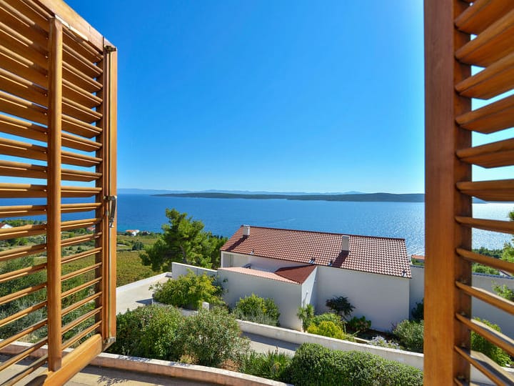 “Margarita (HRV252)”, huis 5-kamers 110 m2 op 2 verdiepingen. Woon-/eetkamer met 1 2-pers divanbed, kookhoek, Sat-TV en air-conditioning. Uitgang naar het terras. 1 kamer met 2 bedden. Woon-/eetkamer met 1 divanbed, Sat-TV en air-conditioning. Uitgang naar het terras. Open keuken (1 kookplaat, oven, afwasmachine, 3 kookpitten (vlammen), broodrooster, waterkoker, elektrische koffiemachine). Douche/WC. Bovenverdieping: 2 kamers, elke kamer heeft 2 bedden. Douche/WC. Terras 10 m2, overdekt terras 30 m2 gedeeltelijk overdekt. Terrasmeubelen, barbecue, ligstoelen (2). Uitzicht op zee. Ter beschikking: wasmachine. Internet (Internet (WiFi), gratis). Geen interne verbinding tussen de aparte wooneenheden.