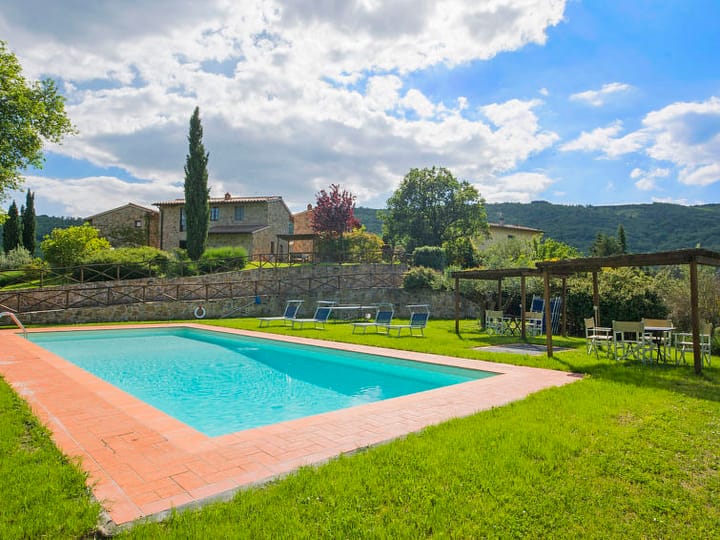 “La Corte”, halfvrijstaand huis 4-kamers 116 m2 op 2 verdiepingen, op de begane grond. Comfortabel en smaakvol ingericht: woon-/eetkamer 30 m2 met 1 2-pers divanbed en Sat-TV (Flatscreen TV). (4-pits kookplaat, afwasmachine, magnetron). Uitgang naar de tuin. Douche/bidet/WC. Bovenverdieping: 2 kamers, elke kamer heeft 1 2-pers bed (140 cm, lengte 190 cm). 1 2-pers. kamer. Douche/bidet/WC. Tuin. Terrasmeubelen, barbecue (verrijdbaar). Ter beschikking: wasmachine, kluis. Internet (Internet (WiFi), gratis). 1 huisdier/hond toegestaan. Vanaf de woon/eetkamer toegang tot de binnenplaats. Op de benedenverdieping (18 traptreden): wasruimte.