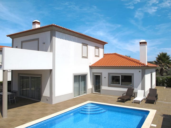 “Praia d’el Rey (OBI131)”, huis 4-kamers 200 m2 op 2 verdiepingen. Modern en smaakvol ingericht: woon-/eetkamer met open haard (alleen decoratie), eettafel en Kabel-TV. Uitgang naar het terras. 1 kamer met 2 bedden (110 cm), douche/WC. Uitgang naar het terras. 1 kamer met 2 bedden (110 cm), douche/WC. Keuken (oven, afwasmachine, 5 kookpitten (vlammen), broodrooster, waterkoker, magnetron, diepvriezer, elektrische koffiemachine). Aparte WC. Vloerverwarming. Verwarming niet in alle ruimtes. Bovenverdieping: 1 kamer met 1 2-pers bed (180 cm), douche/WC. Uitgang naar het terras. Terras overdekt terras, tuin 450 m2. Terrasmeubelen, barbecue, ligstoelen (6). Ter beschikking: wasmachine, droger, strijkijzer, kinderstoel, kinderbed. Internet (Internet (WiFi), gratis). Garage. Let op: brandblusser. Bij het huurobject gaat het om een typenhuis / een typenappartement. 58337/AL