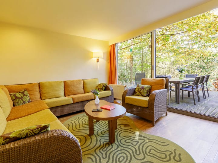 “Cottage Premium”, huis in een rij 5-kamers 104 m2. Licht, zeer comfortabel en gezellig ingericht: woon-/eetkamer met open haard, eettafel en TV (Flatscreen TV). Uitgang naar het terras. 2 kamers, elke kamer heeft 1 2-pers bed (180 cm, lengte 210 cm). 2 kamers, elke kamer heeft 2 bedden (80 cm, lengte 200 cm). Open keuken (afwasmachine, 4 kookpitten (vlammen), broodrooster, waterkoker, elektrische koffiemachine, combimagnetron). Badkamer, douche, aparte WC, hydro massage bad. Houten vloeren. Terras. Terrasmeubelen. Ter beschikking: kinderstoel, kinderbed, haardroger. Internet (Internet (WiFi), gratis). Parkeerplaats (2 Auto’s). Let op: niet rokers woning. Bij het huurobject gaat het om een typenhuis / een typenappartement.