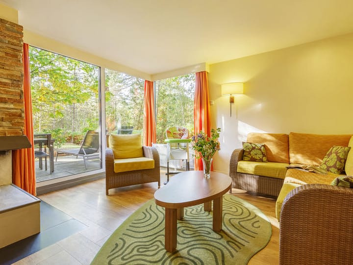 “Cottage Premium”, huis in een rij 3-kamers 64 m2. Licht, zeer comfortabel en gezellig ingericht: woon-/eetkamer met open haard, eettafel en TV (Flatscreen TV). Uitgang naar het terras. 1 kamer met 1 2-pers bed (180 cm, lengte 210 cm). 1 kamer met 2 bedden (80 cm, lengte 200 cm). Open keuken (afwasmachine, 4 kookpitten (vlammen), broodrooster, waterkoker, elektrische koffiemachine, combimagnetron). Badkamer, aparte WC, dubbele wastafels, hydro massage bad. Houten vloeren. Terras. Terrasmeubelen. Ter beschikking: kinderstoel, kinderbed, haardroger. Internet (Internet (WiFi), gratis). Parkeerplaats (1 Auto). Let op: niet rokers woning. Bij het huurobject gaat het om een typenhuis / een typenappartement.