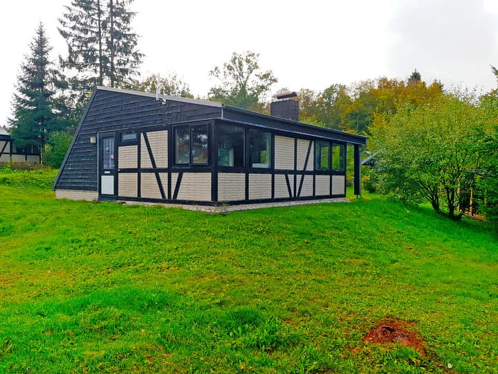 “Haus 42”, bungalow 4-kamers 60 m2. Gedeeltelijk afgeschuinde daken, gezellig ingericht: woon-/eetkamer 30 m2 met open haard en Sat-TV (Flatscreen TV). Uitgang naar het terras. 1 kamer 9 m2 met 2 bedden (80 cm, lengte 190 cm). 2 kamers 6 m2, elke kamer heeft 2 bedden (80 cm, lengte 190 cm). Kleine, open keuken 5 m2 (4-pits kookplaat, oven, magnetron, elektrische koffiemachine). Bad/douche/WC. Elektrische verwarming. Terras 10 m2 gedeeltelijk overdekt. Terrasmeubelen. Ter beschikking: haardhout (extra). Internet (Internet (WiFi), extra). Let op: rookvrij huis. Maximaal 2 huisdieren/honden toegestaan. Rookmelders.
