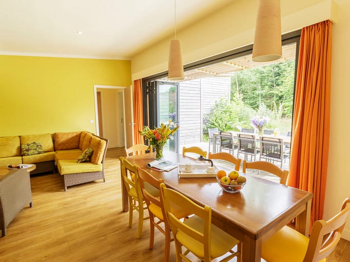 “Cottage Premium”, huis in een rij 5-kamers 92 m2. Licht, zeer comfortabel en gezellig ingericht: woon-/eetkamer met open haard, eettafel en TV (Flatscreen TV). Uitgang naar het terras. 2 kamers, elke kamer heeft 1 2-pers bed (180 cm, lengte 210 cm). 2 kamers, elke kamer heeft 2 bedden (90 cm, lengte 210 cm). Open keuken (afwasmachine, 4 keramische glas kookplaten, broodrooster, waterkoker, elektrische koffiemachine, combimagnetron). Badkamer, 2 douches, aparte WC, hydro massage bad. Houten vloeren. Terras. Terrasmeubelen. Ter beschikking: kluis, kinderstoel, kinderbed. Internet (Internet (WiFi), gratis). Parkeerplaats (2 Auto’s). Let op: niet rokers woning. Bij het huurobject gaat het om een typenhuis / een typenappartement.