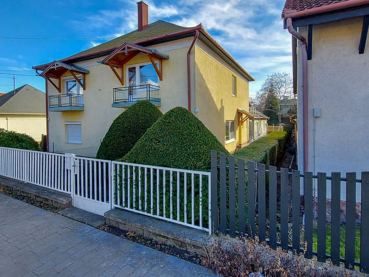 “Piroska”, halfvrijstaand huis 5-kamers 90 m2 op 2 verdiepingen. Doelmatig ingericht: woon-/slaapkamer met 1 2-pers divanbed en Sat-TV (Flatscreen TV), radio en CD-speler. Eetkamer. Uitgang naar de tuin. Keuken (oven, 4 kookpitten (vlammen), broodrooster, waterkoker, magnetron) met eettafel. Badkamer, aparte WC. Bovenverdieping: 1 kamer met 1 2-pers bed. Uitgang naar het balkon. 2 kamers, elke kamer heeft 2 bedden. Douche/WC. Verwarming. Parketvloeren. Balkon, terras, op het zuiden gelegen. Terrasmeubelen, barbecue (verrijdbaar). Ter beschikking: wasmachine, kinderbed (extra). Internet (Internet (WiFi), gratis). Let op: rookvrij huis. Privé ingang. MA21001624