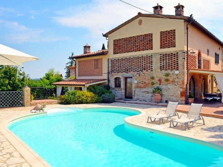 “La Vecchia Pieve”, huis 7-kamers 182 m2 op 3 verdiepingen, op de begane grond. Comfortabel en mooi ingericht: hal. 2 2-pers. kamers. Uitgang naar het terras. Woon-/slaapkamer met 1 2-pers divanbed, eettafel, Sat-TV en DVD. Uitgang naar het terras. Open keuken (4-pits kookplaat, afwasmachine, magnetron, diepvriezer, grill, elektrische koffiemachine). 2 douche/WC’s. Bovenverdieping: groot woon-/eetkamer met 1 2-pers divanbed, open haard, Sat-TV en DVD. 1 kamer met 1 2-pers bed. 1 kamer met 1 2-pers divanbed. Open keuken (4-pits kookplaat, afwasmachine, magnetron, diepvriezer). 2 douche/WC’s. 2e Verdieping: open galerij met afgeschuinde daken met 1 2-pers bed. Groot terras. Terrasmeubelen. Mooi uitzicht op het landschap. Ter beschikking: kluis, strijkijzer, kinderstoel, kinderbed. Internet (Internet (WiFi), gratis). Let op: rookvrij huis. Geen interne verbinding tussen de aparte wooneenheden.