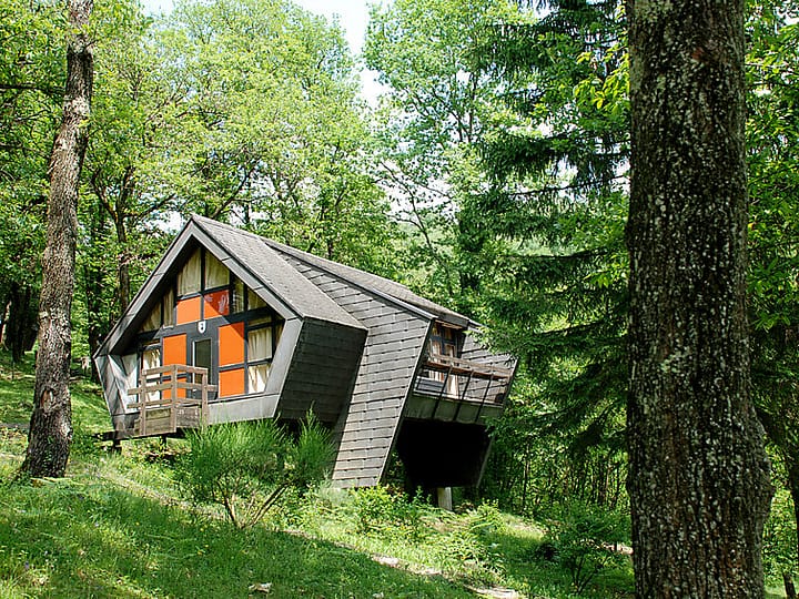 “Typ B”, bungalow 6-kamers. Gedeeltelijk afgeschuinde daken, zeer eenvoudig en doelmatig ingericht: open woon-/eetkamer met eettafel. 3 kamers, elke kamer heeft 1 bed (90 cm, lengte 200 cm). Kleine, open keuken (3-pits kookplaat, oven). Douche/WC. Bovenverdieping: open galerij met afgeschuinde daken met 1 2-pers bed (2 x 90 cm, lengte 200 cm). 2 kamers, elke kamer heeft 1 bed (90 cm, lengte 200 cm). Bergruimte. Let op: geschikt voor families. Rookvrij huis. 1 huisdier/hond toegestaan.