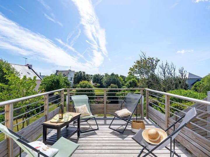 “Villa Les Hortensias”, huis 5-kamers 130 m2 op 3 verdiepingen. Mooi ingericht: Bovenverdieping: (buitentrap) hal. Woon-/eetkamer met eettafel, TV en Flatscreen TV. Uitgang naar het terras. Salon. Keuken (1 kookplaat, oven, afwasmachine, 3 kookpitten (vlammen), broodrooster, waterkoker, magnetron, elektrische koffiemachine) met eettafel. Douche, aparte WC. Zolderverdieping: 2 kamers, elke kamer heeft 1 2-pers bed (140 cm, lengte 190 cm). 1 kamer met 2 2-pers bedden (90 cm, lengte 200 cm). Douche. Olie-verwarming. Parketvloeren. Groot balkon, op het westen gelegen, groot terras, op het westen gelegen. Terrasmeubelen, barbecue, ligstoelen (4). Ter beschikking: wasmachine, strijkijzer, haardroger. Internet (Internet (WiFi)). Let op: rookvrij huis. Rookmelders.