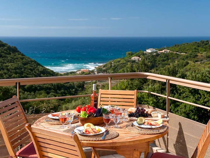 “Plage de Saleccia”, villa 3-kamers 90 m2. Ruim en licht, stijlvol en gezellig ingericht: groot woon-/eetkamer met 1 divanbed en TV (Flatscreen TV), air-conditioning. Uitgang naar het terras, naar het zwembad. 1 kamer met 1 2-pers bed (160 cm, lengte 190 cm). 1 kamer met 2 bedden (90 cm, lengte 190 cm). Keuken (4-pits kookplaat, oven, afwasmachine, broodrooster, waterkoker, magnetron, elektrische koffiemachine). 2 douche/WC’s. Groot terras 80 m2. Terrasmeubelen, barbecue. Zeer mooi uitzicht op zee en de bergen. Ter beschikking: wasmachine. Internet (Internet (WiFi)). Parkeerplaats. Let op: rookmelders.