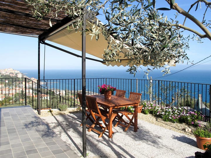 “Villa Greta (PGI190)”, huis 3-kamers 100 m2 op 2 verdiepingen. Licht, modern en gezellig ingericht: woon-/slaapkamer met 1 2-pers divanbed (140 cm), eettafel en Sat-TV. Uitgang naar het terras. Open keuken (oven, afwasmachine, 4 kookpitten (vlammen), broodrooster, waterkoker, magnetron, diepvriezer, elektrische koffiemachine). Douche/bidet/WC. Souterrain: 2 kamers, elke kamer heeft 1 2-pers bed (160 cm). Uitgang naar de tuin. Douche/bidet/WC. Gas-verwarming. Terras 40 m2 gedeeltelijk overdekt, zithoek in de tuin. Terrasmeubelen, barbecue (verrijdbaar), ligstoelen (4). Mooi uitzicht op zee, de baai en Porto Maurizio. Ter beschikking: wasmachine, kinderstoel, kinderbed. Internet (Internet (WiFi), gratis). Geschikt voor families. CITRA: 008031-LT-0857