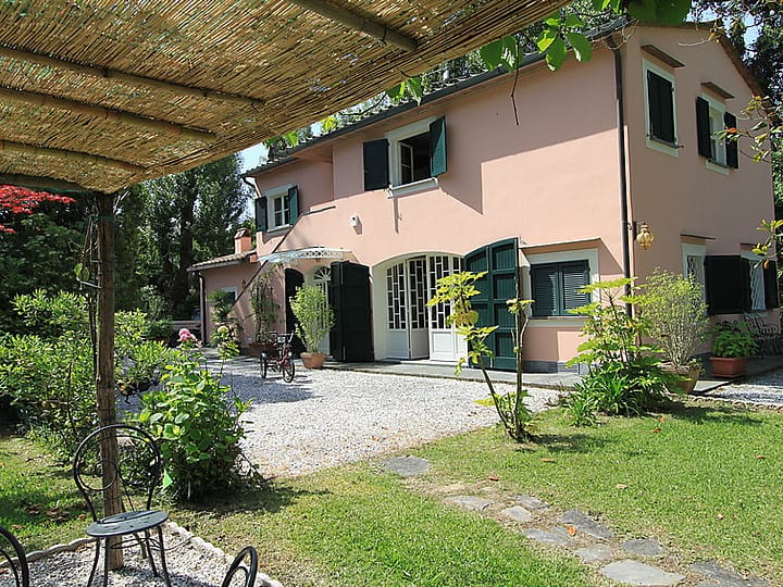 “Il Parco”, villa 8-kamers 180 m2. Comfortabel en smaakvol ingericht: woonkamer met Sat-TV en DVD. Eetkamer. 1 2-pers. kamer met douche/bidet/WC. 1 kamer met 1 bed en douche/bidet/WC. Keuken (4-pits kookplaat, oven, afwasmachine, magnetron, diepvriezer) met eettafel, bar. Aparte WC. Bovenverdieping: 1 2-pers. kamer met douche/bidet/WC en air-conditioning. 1 2-pers. kamer met douche/bidet/WC en air-conditioning. 2 kamers, elke kamer heeft 2 bedden en air-conditioning. Douche/bidet/WC. Ter beschikking: strijkijzer, haardroger. Let op: niet rokers woning.