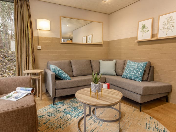 “VIP Cottage”, huis in een rij 2-kamers 54 m2. Comfortabel ingericht: hal met aparte WC. Woon-/eetkamer met open haard, eettafel en Flatscreen TV. Uitgang naar het terras. 1 2-pers. kamer met 2 bedden en Flatscreen TV. Open keuken (5-pits kookplaat, afwasmachine, broodrooster, waterkoker, elektrische koffiemachine, combimagnetron). Douche, hydro massage bad. Terras. Terrasmeubelen, barbecue, bergruimte. Ter beschikking: sauna, kluis, kinderstoel, kinderbed. Internet (Internet (WiFi), gratis). Let op: rookmelders.