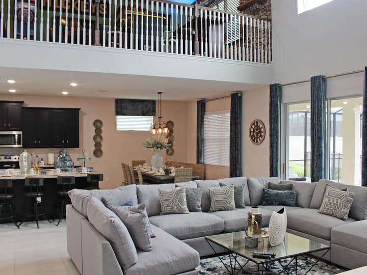 Villa 9-kamers 300 m2 op 2 verdiepingen. Comfortabel en modern ingericht: woon-/eetkamer met eettafel en TV. 2 kamers, elke kamer heeft 1 2-pers bed (200 cm), douche/WC. 2 kamers, elke kamer heeft 1 2-pers bed (160 cm), bad/WC. 2 kamers, elke kamer heeft 2 x 2 stapelbedden. Galerij. Speelkamer. Groot, open keuken (oven, afwasmachine, magnetron, diepvriezer, elektrische koffiemachine, kookeiland). Bad/WC. Air-conditioning. Terrasmeubelen. Ter beschikking: wasmachine, droger. Internet (Internet (WiFi), gratis). Let op: geschikt voor families. Rookvrij huis.