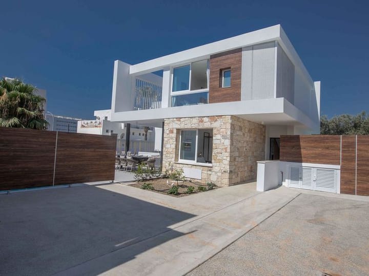 Overige voorzieningen: kluis, kinderstoel, haardroger, strijkijzer, wasmachine, droger. This luxury and brand new 5 bedroom, 3 storey villa is located in a prime, central Ayia Napa location, just a few minutes walk to Nissi Avenue and all its beaches and amenities. The villa is newly built and fully equipped with new and contemporary furniture and fittings to ensure a comfortable stay. As you enter the villa, you will find the spacious, and very modern open-plan living room, kitchen and dining area, with large patio doors leading to the garden and pool. The living room features a comfortable corner sofa, widescreen Smart TV with satellite channels and wi-fi connection. The dining area has a table and chairs to seat 10 people and the kitchen is fully equipped with all appliances and utensils needed for an enjoyable self-catering stay.One of the five bedrooms can be found on the ground floor with a double bed, and you will also find one of the bathrooms with shower and WC. Upstairs, you will find three of the bedrooms, one double and two twin bedrooms. The master bedroom has an en suite bathroom with shower and WC. All bedrooms are complete with wardrobes and bedside cabinets. The main family bathroom with shower and WC is also on this floor.Downstairs, on the lower ground floor level which is accessed from the living room, you will find the remaining bedroom with two single beds and access to the veranda. There is another bathroom on this floor with a shower and WC, and a communal area with a full sized football table and table tennis.Outside, the beautiful and sizeable garden offers a barbecue, work-top and sink area, outside shower, a generous-sized dining area with seating for 10 people, an extra seating area with comfortable sofas, sunloungers and the large, private pool, ideal for those hot days lazing in the Cyprus sun. There is full air-con and WI-FI throughout the villa.This stunning and elaborate villa, in an ideal central location is the ultimate choice for families or groups of friends looking for a peaceful, relaxing and luxurious break . Bedroom 1: 1 Double Bed with En-Suite Bathroom / Bedroom 2: 2 Single Bed / Bedroom 3: 2 Single Beds / Bedroom 4 (Ground Floor): 1 Double Bed / Bedroom 5 (Basement): 2 Single Beds.